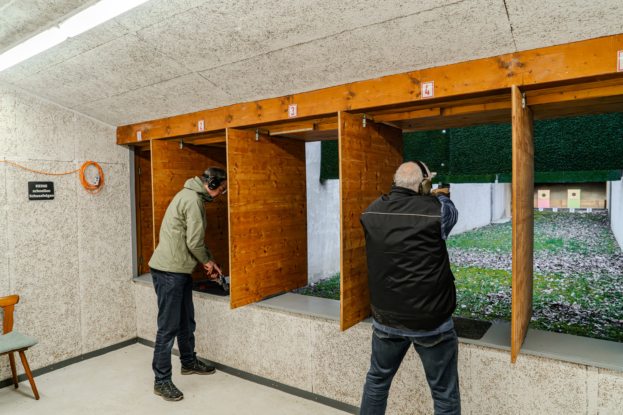 Unsere 25-Meter-Anlage ist für alle gängigen Kurzwaffendisziplinen nach Sportordnung ausgelegt. Dank Drehscheibenanlage (Match-Anlage) können hier sowohl statische Präzisionsdisziplinen als auch dynamische Zeitintervalle (Duell) professionell trainiert werden.